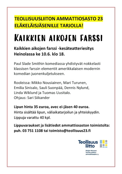 * lähettämällä sähköpostitse osoitteeseen toimisto(at)teollisuus23.fi