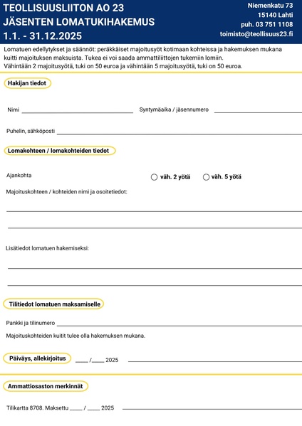 Lähetä hakemus täytettynä maksukuittien kera 15.1.26 mennessä.